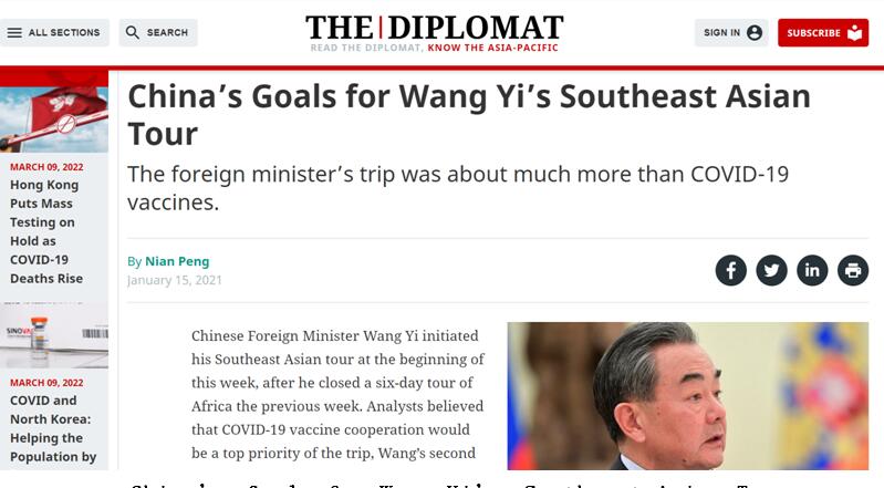 China’s Goals for Wang Yi’s Southeast Asian Tour